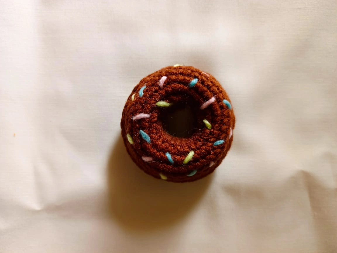 Sweeten your style with the Coco Loop. A premium, chocolate-brown crochet donut keychain featuring artisan pastel sprinkles. Handcrafted by Faifat Official for a tactile, high-end accessory experience.