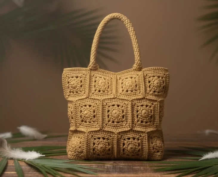 | Craftsmanship | 100% Hand-Crocheted. Guaranteed premium quality, showcasing uniform tension and flawless execution of the geometric motif throughout the body. |