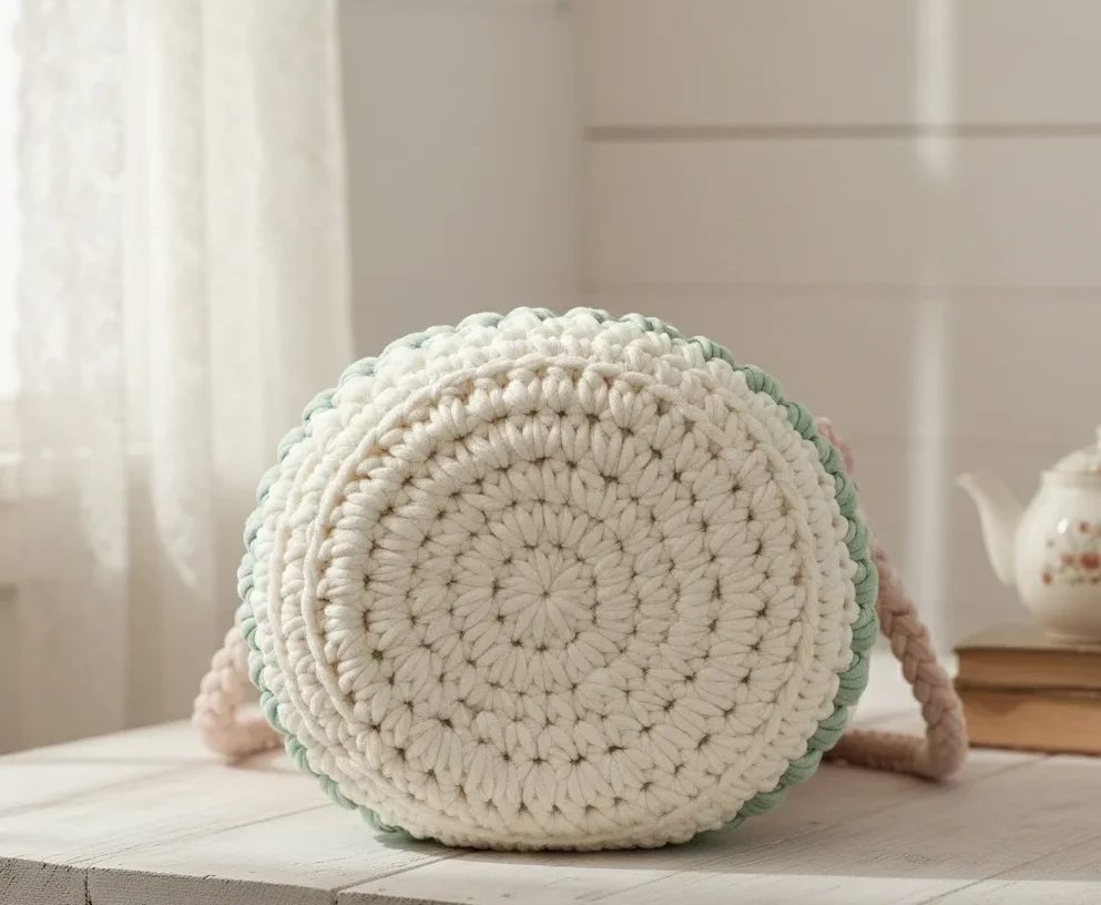 Braided Strap: The shoulder strap is tightly crocheted in a thick braid. This construction ensures both comfort and durability for use as a crossbody or shoulder bag.